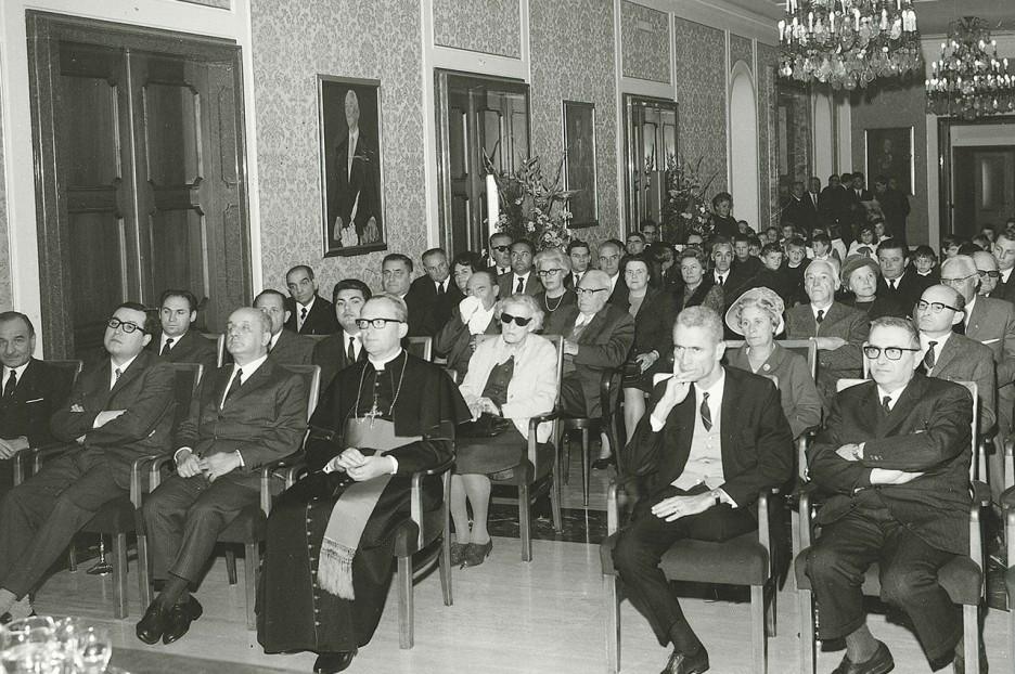14.11.1968. Erste Reihe von links: der Bürgermeister von Bozen, Dr. Bolognini, Der Regierungskommissär der Provinz Bozen, der Bischof Mons. Gargitter, der Landeshauptmann Dr. Silvius Magnago