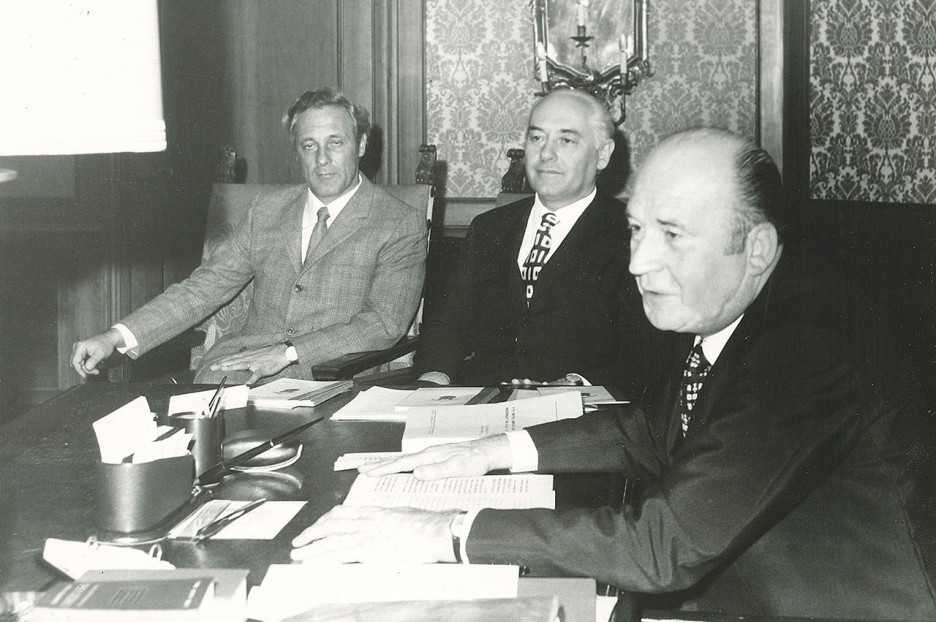 28.5.1971. Von links: der Präsident, der Generaldirektor und der Vize-Generaldirektor der Sparkasse Rag. Hubert Deutsch