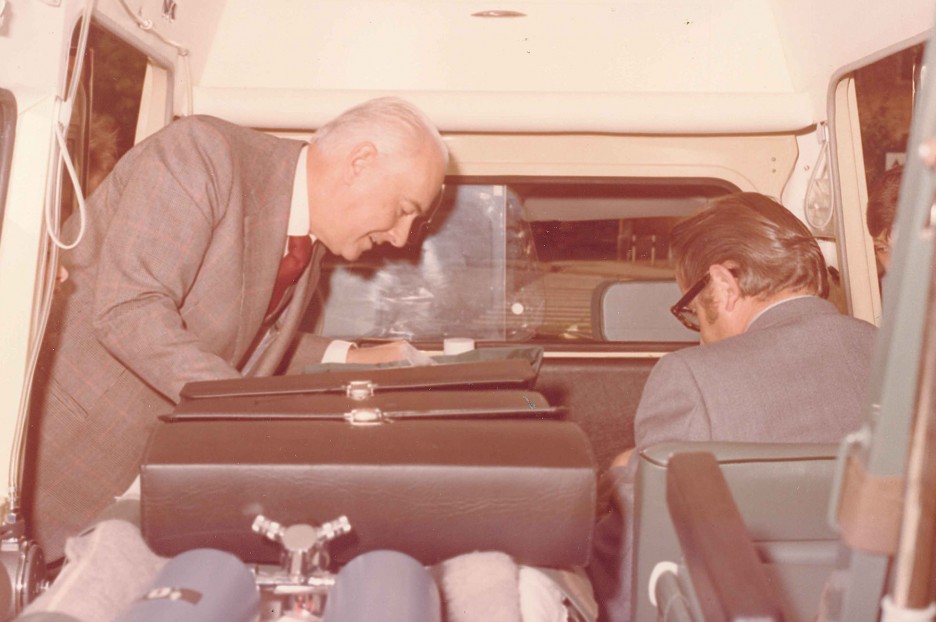 Schenkung eines Krankenwagens dem Weißen Kreuz