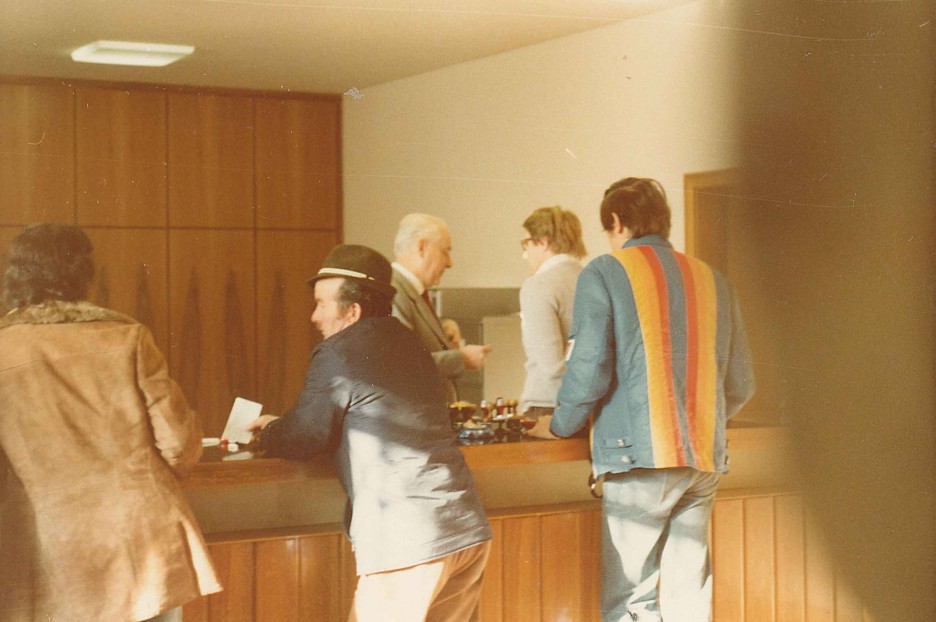 02.01.1975. Der Generaldirektor verabschiedet sich von den verschiedenen Abteilungen der Sparkasse